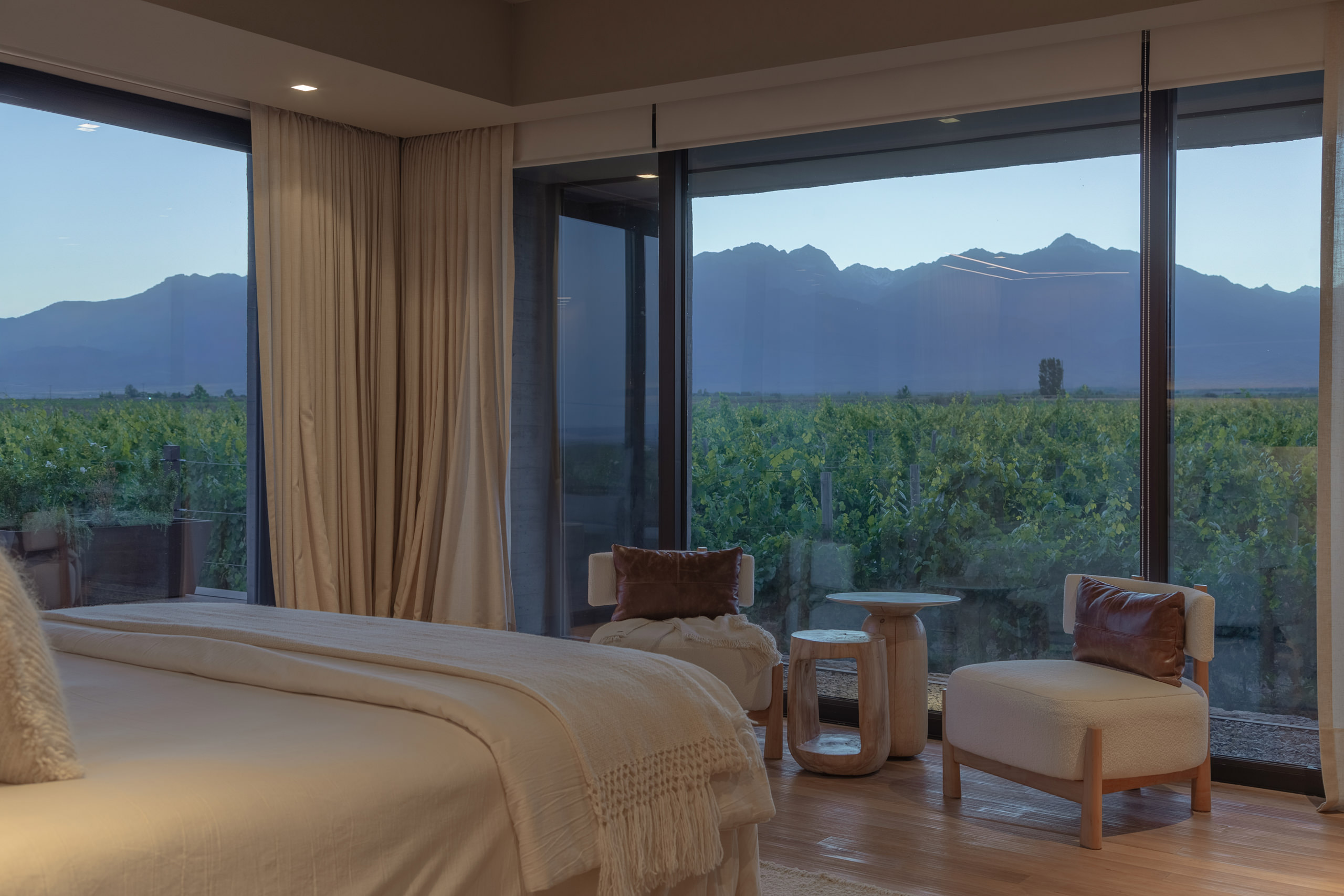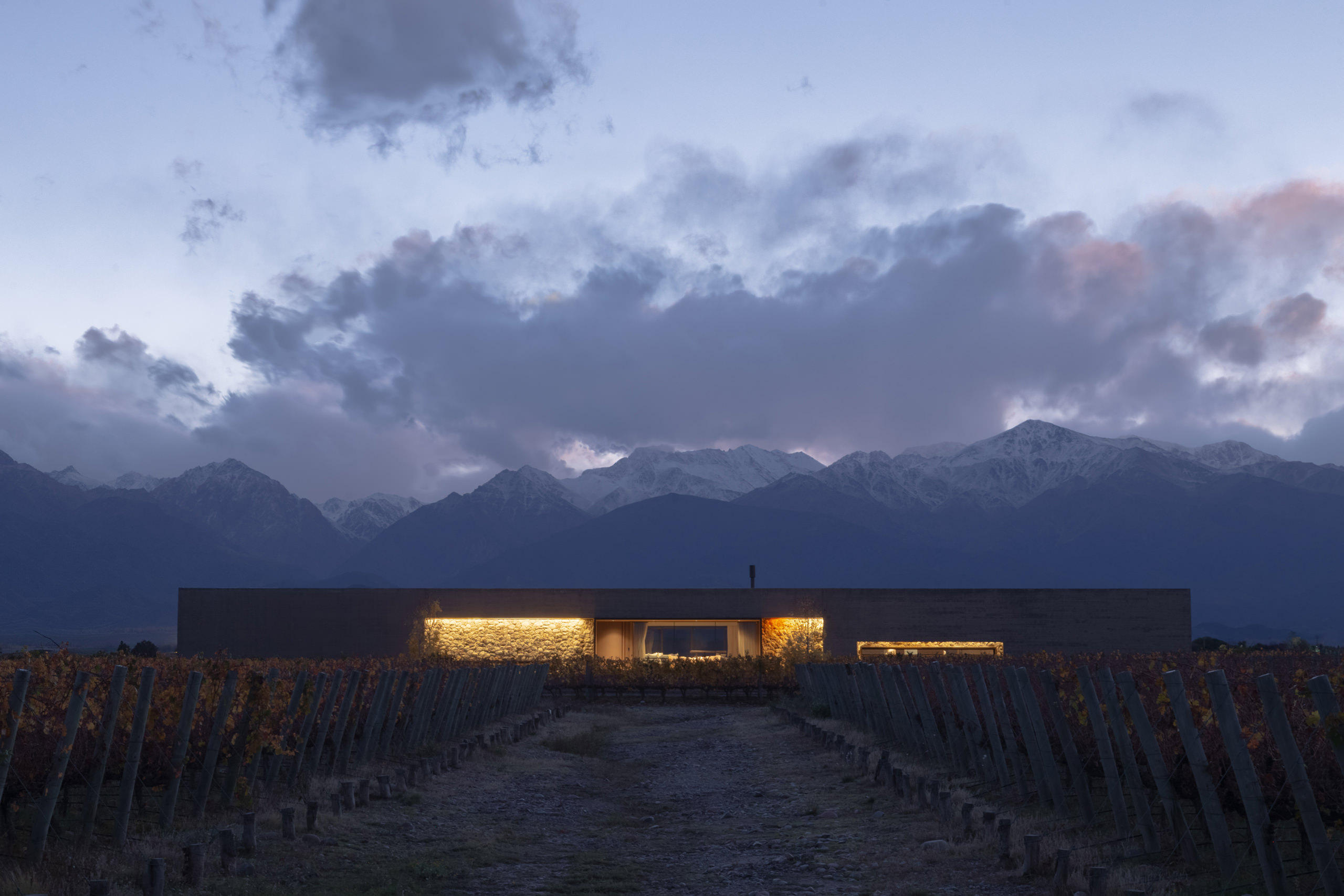 Set within a vast six-acre vineyard in The Vines of Mendoza, in the quiet locality of Los Chacayes, Tunuyán, Strazik House rises subtly from the ground—an understated insertion in one of Argentina’s most revered wine regions. Surrounded by the dramatic presence of the Andes and a landscape defined by silence, the house is both a dwelling and a declaration of respect for place. At an altitude where the sky meets vine-covered earth, the home reveals itself not through architectural bravado, but through restraint, harmony, and intent. For Scott, the client and a passionate devotee of viticulture, this was never just a residential project. It was an aspiration: to create a home within the vineyard, to live among the vines, and to offer his family and friends a place of refuge, reflection, and shared moments. This emotional connection to land and lifestyle became the guiding principle behind the brief. The architecture needed to embody this sense of belonging—to provide spaces that celebrated the ritual of everyday life, while offering continual visual and spatial dialogue with the surrounding landscape.