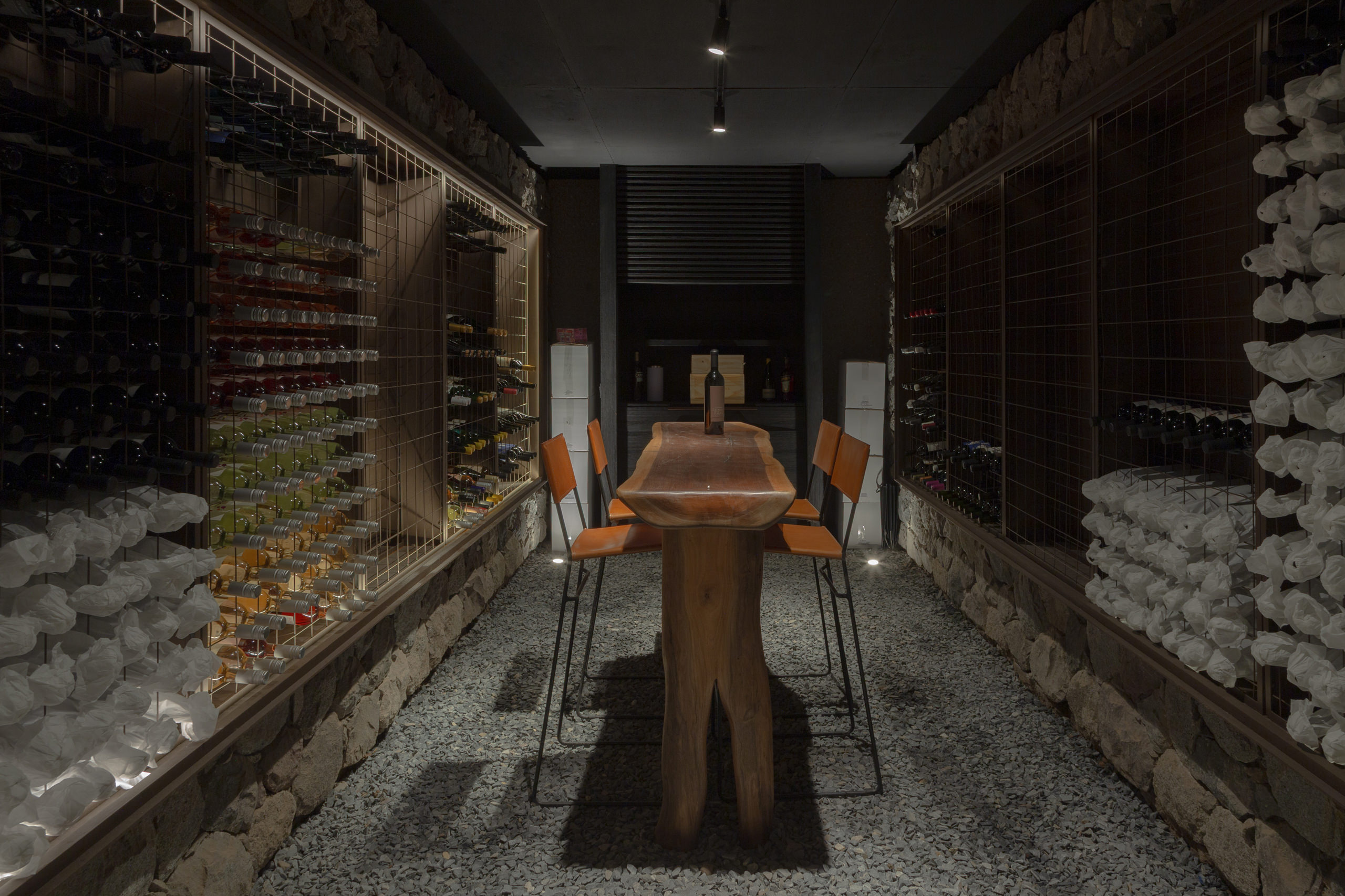In plan and section, the home expresses a rigorous geometry guided by proportion and balance. Light and shadow become materials in their own right, shaping the experience of the interior as much as the walls themselves. The calibration between solid and void—between shelter and openness—is finely tuned. In doing so, the home becomes a vessel for silence. Every room is designed to frame a moment: the shifting light, the curve of the vine rows, the changing seasons. This spatial rhythm—sparse, deliberate—echoes the slowness of wine itself, a product of patience, care, and waiting.