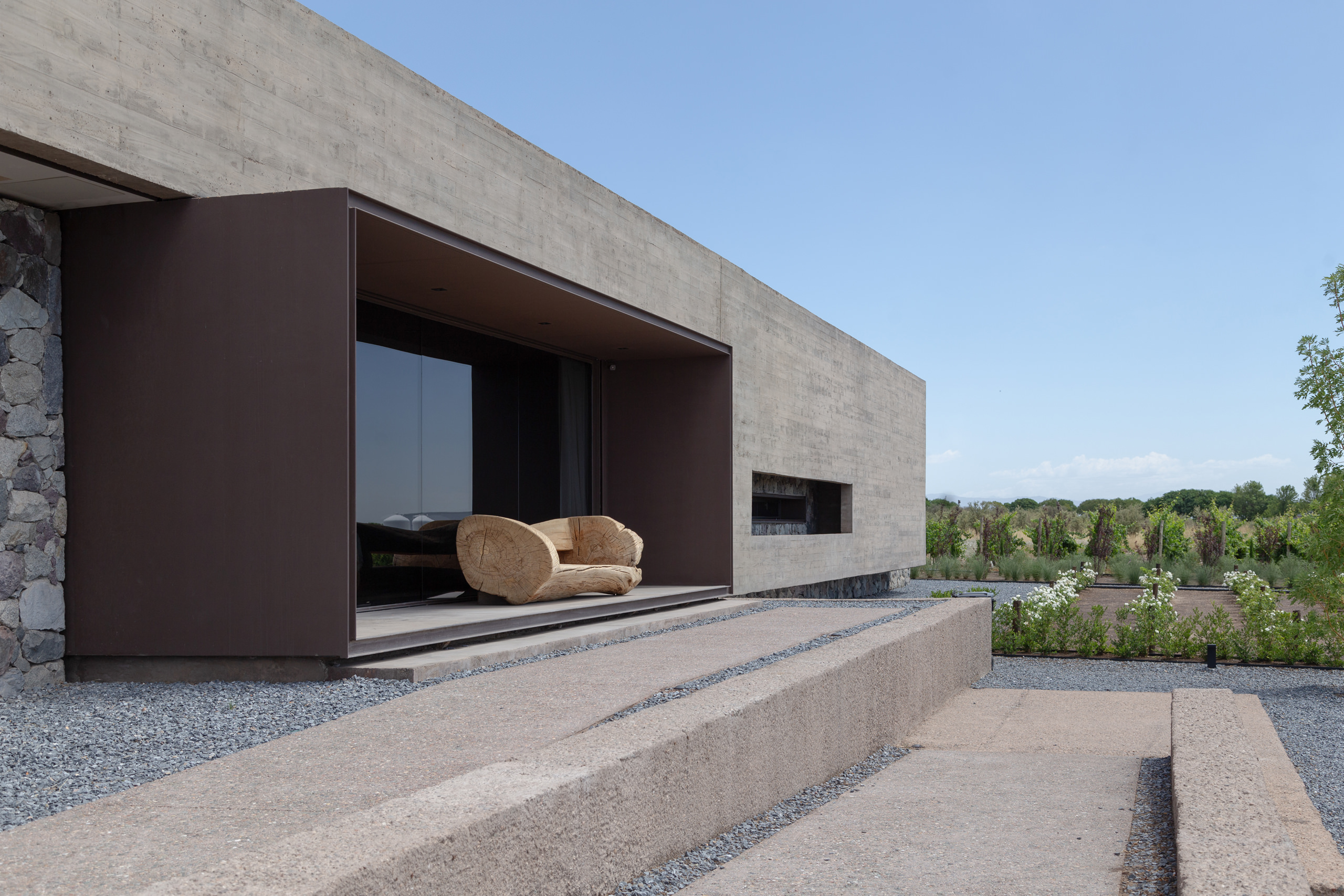 The platform on which the house sits plays a crucial mediating role. Slightly elevated, it gently detaches the home from the rawness of the vineyard while offering a raised vantage point—a reorientation of perspective. This shift in altitude is subtle but meaningful: it allows the gaze to lift beyond the immediate, drawing the distant into everyday experience. The home thus becomes a tool for viewing, for seeing, for connecting.