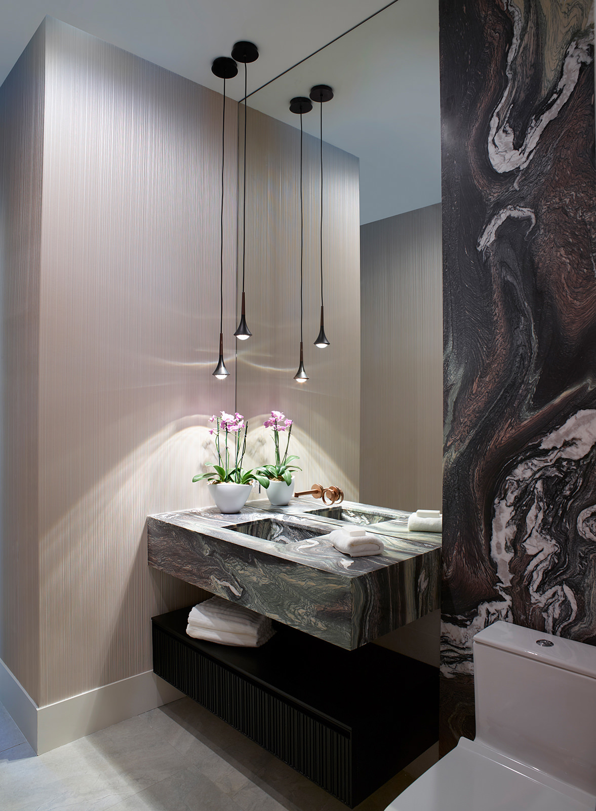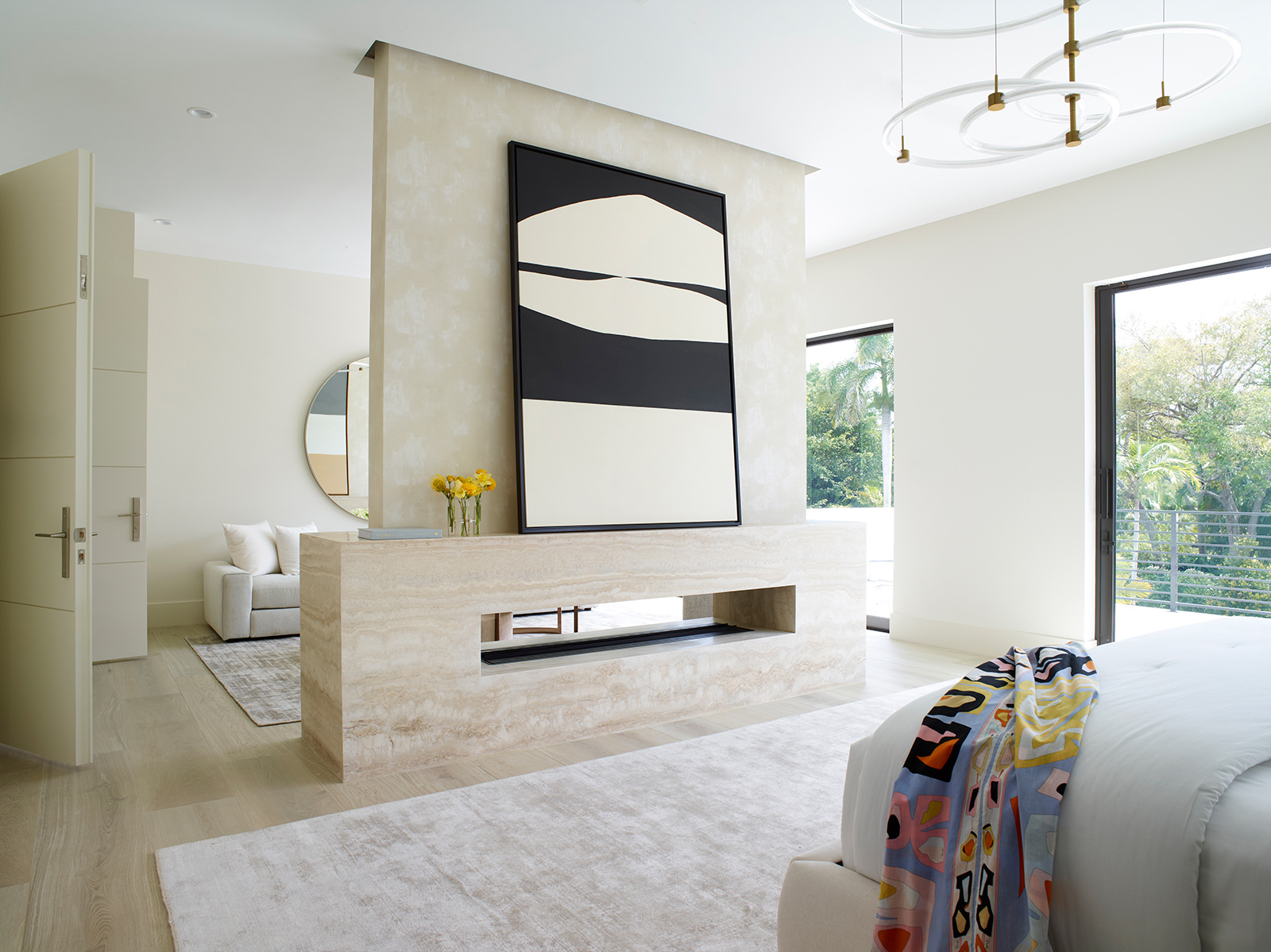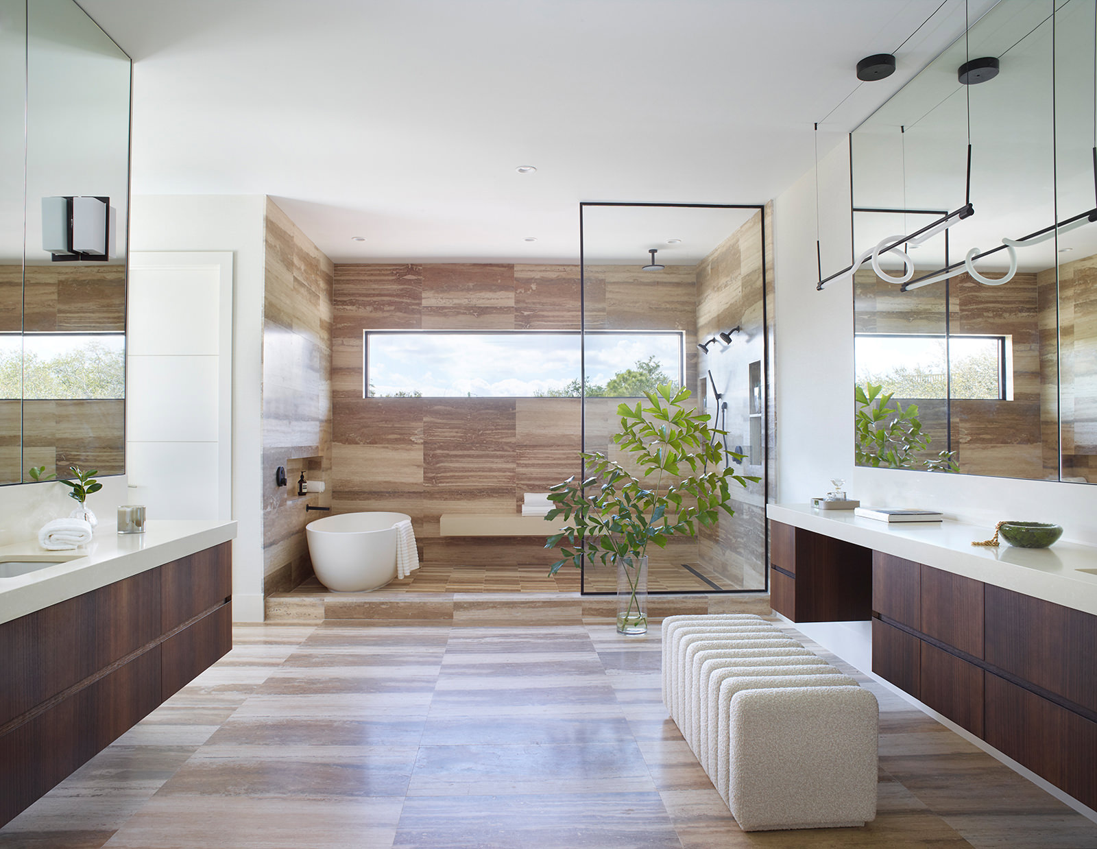 The material palette is restrained yet deeply sensory. Soft warm neutrals provide a base, enhanced by pale woods such as white oak and natural stones with gentle veining like travertine and limestone. Material continuity not only unifies the spaces but offers a tactile quality that invites pause. Every junction and transition has been resolved with near-craft-like care, reflecting Hollub Group’s enduring commitment to construction excellence.