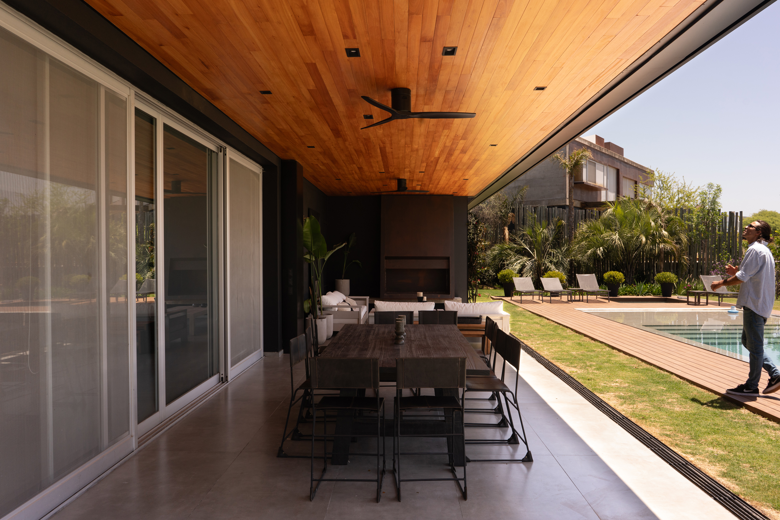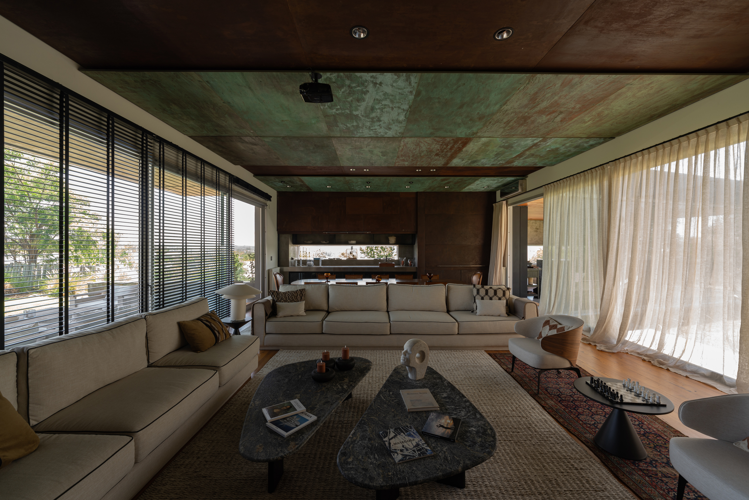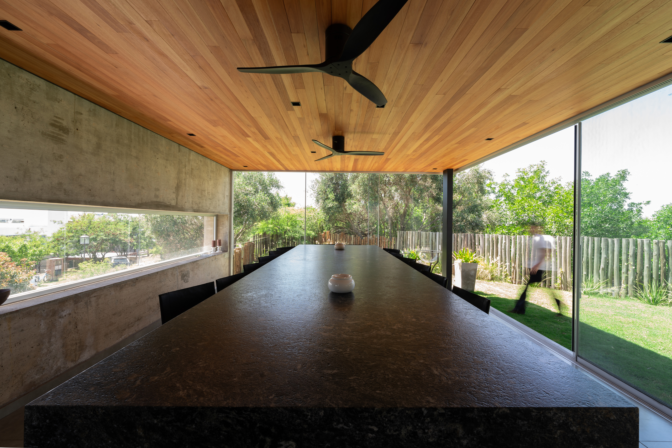 This integration of built form and nature allows the house to breathe. It is not a sealed volume, but a series of spaces in constant negotiation with climate, orientation and light. It is an architecture that listens to its environment, that allows its form to be shaped by natural rhythms and site-specific conditions.