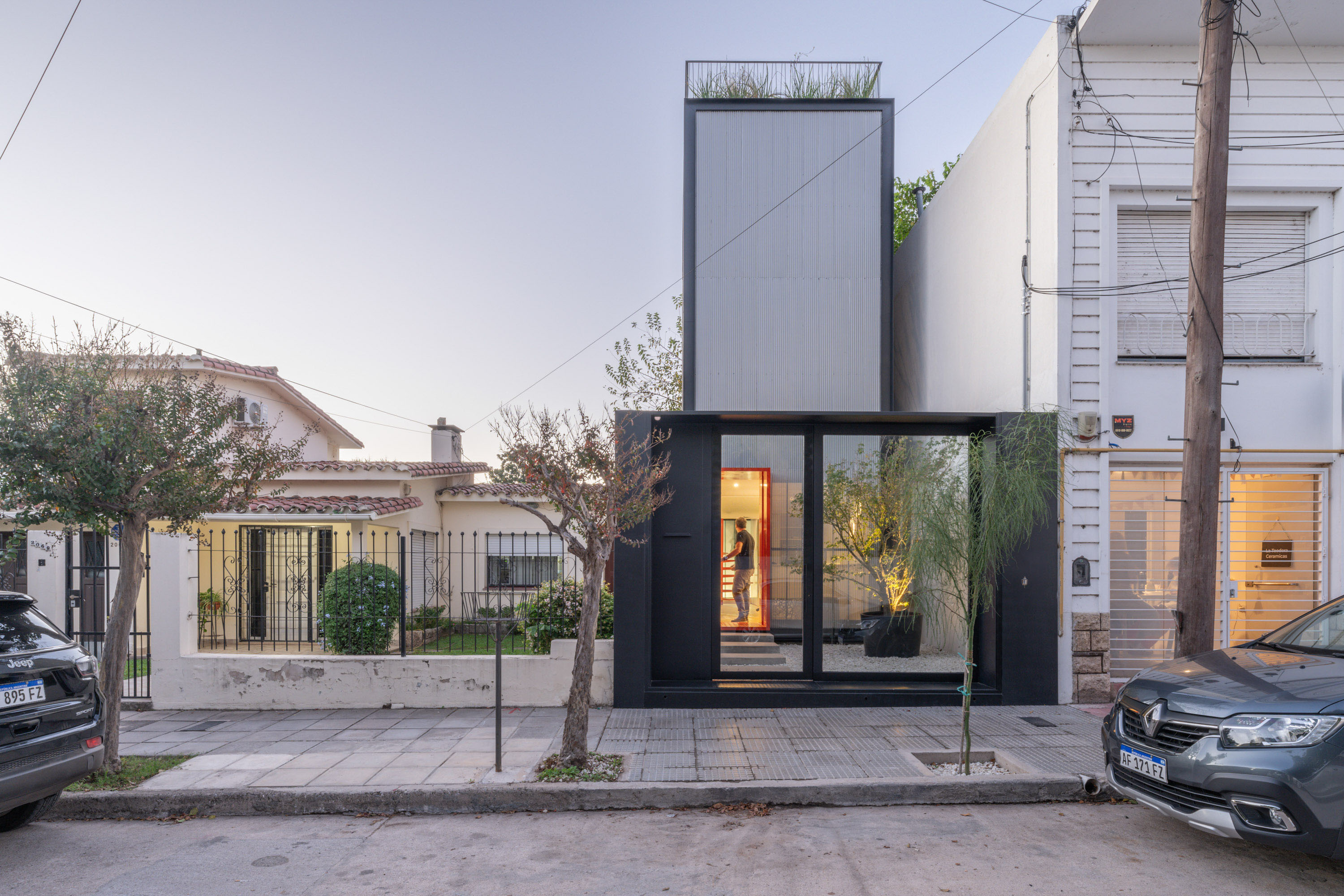 The building’s thoughtful interplay of light, texture, and rhythm evokes a sense of calm modernity—an architectural reflection of balance between the city’s pulse and the studio’s creative stillness. Nestled within the vibrant fabric of Córdoba’s Cerro de las Rosas, the project embraces its context while asserting its individuality. Just steps away from the Mujer Urbana interchange, the site is both exposed and compact—a condition that FV Arquitectos transforms into an opportunity for architectural clarity. The studio emerges as a sculptural prism, rising confidently yet with composure. Set back a mere fifty centimetres from its boundaries, it engages directly with the street, creating a bold yet respectful urban gesture that invites curiosity and contemplation.