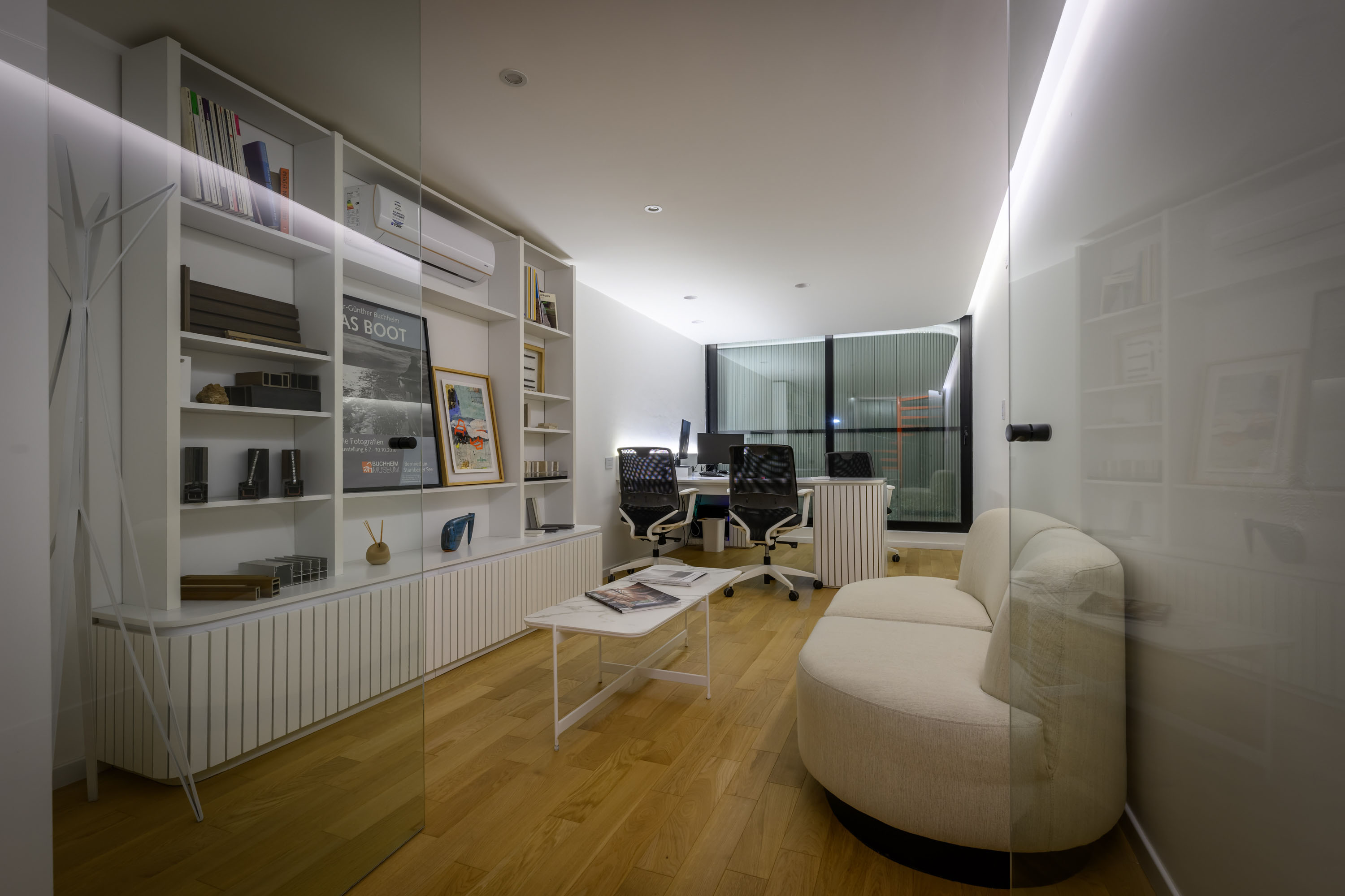 Custom-designed furnishings infuse the space with movement and rhythm. The interplay of curves and counter-curves within desks, shelving, and partitions disrupts the orthogonal geometry of the building’s envelope, bringing warmth and tactility to the minimalist shell. These forms embody a human softness within the architectural precision, ensuring that the workspace remains both inspiring and approachable. It is here that the architects’ philosophy becomes tangible: design as a continuum between structure and sensibility.