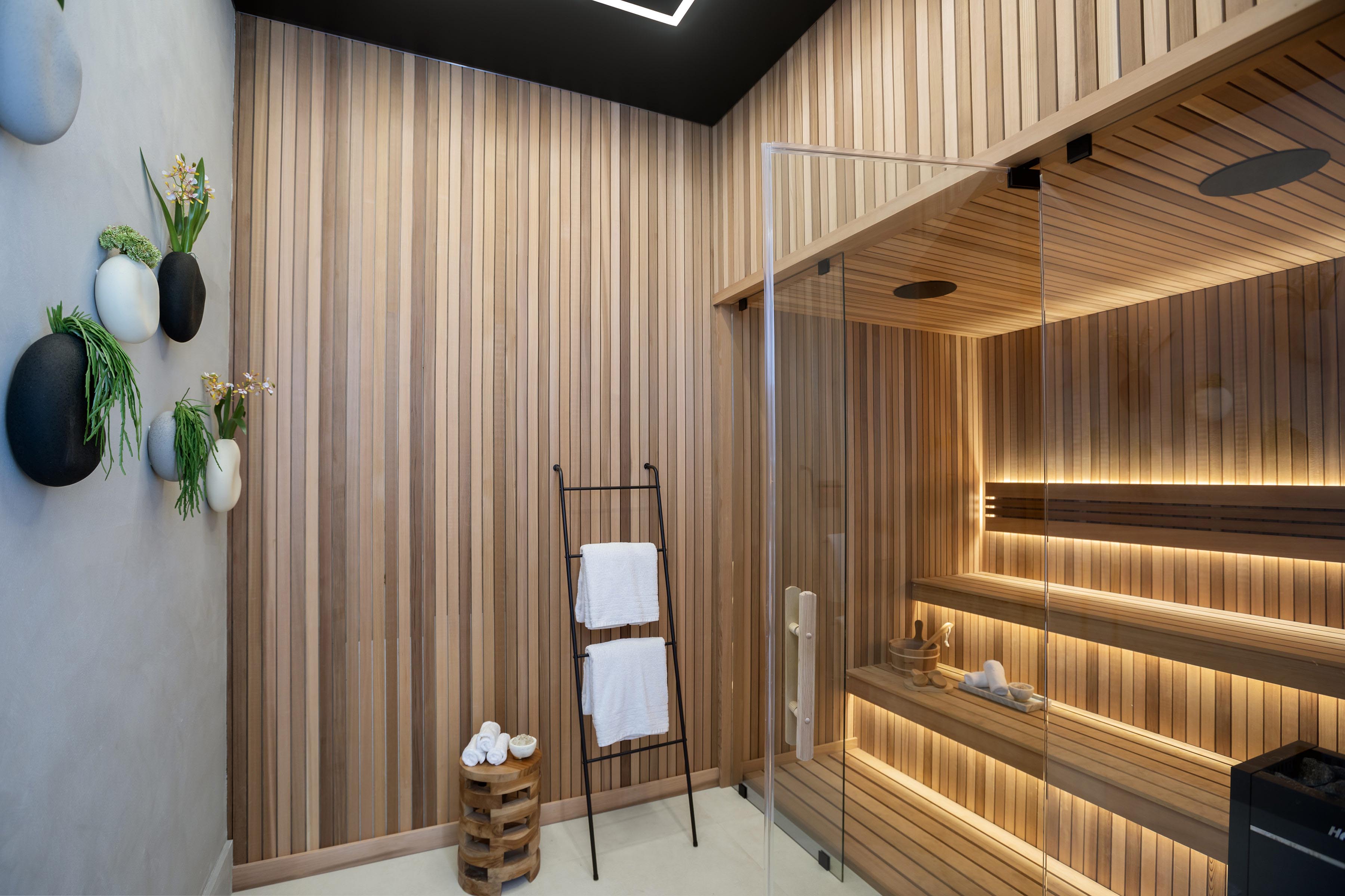 The home also offers spaces of indulgence and restoration, such as a private theater and a custom-designed spa with sauna. These zones extend the home’s experiential arc—designed with the same attention to tone and tactility. In the cinema, sound and light are orchestrated for immersion, while the spa offers a gentle blend of timber, stone and soft light—a space that invites disconnection and reconnection in equal measure.