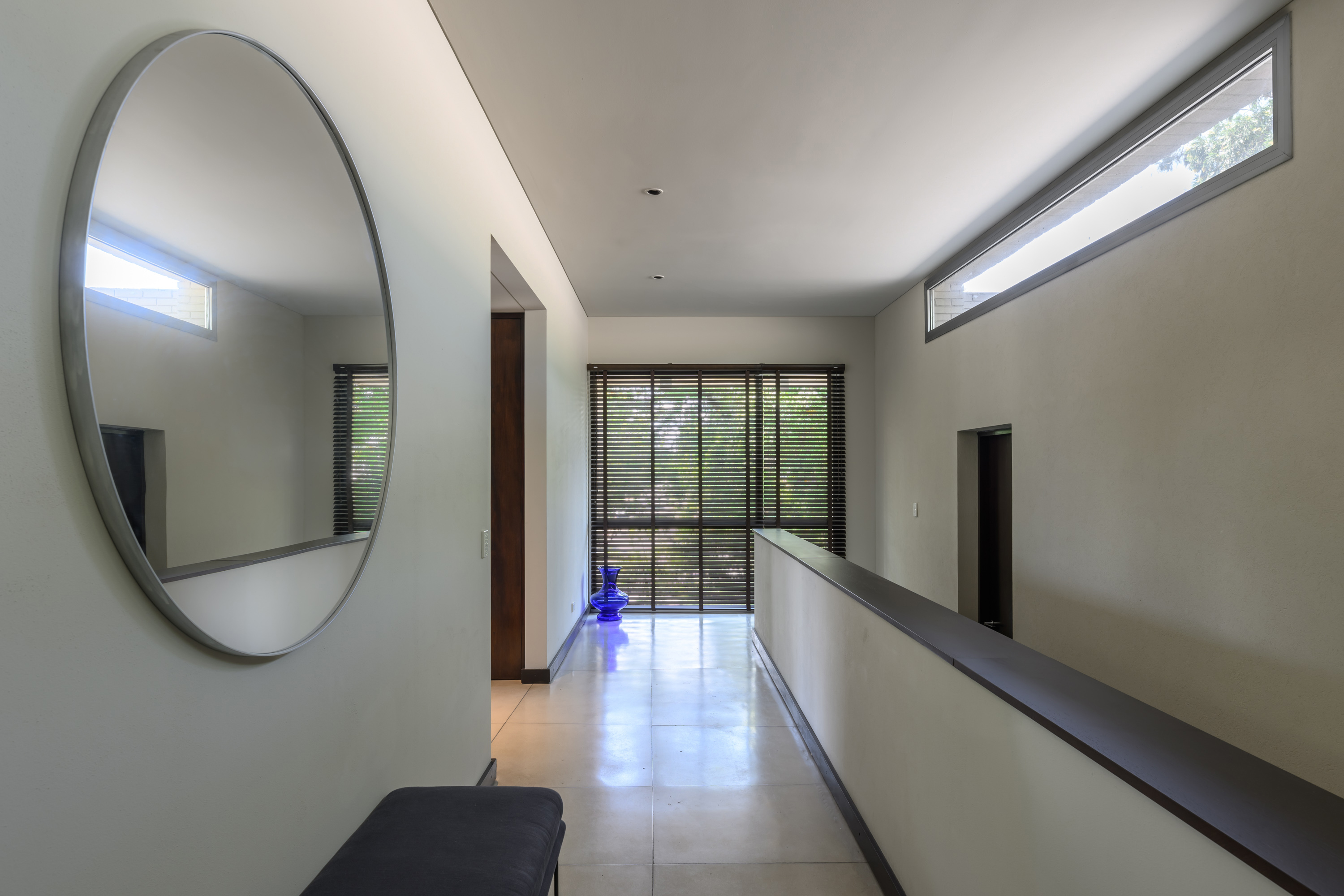 Exterior transitional zones—galleries, terraces and shaded bands—expand the functional footprint of the home. These intermediary spaces mediate climate, tempering sunlight and encouraging natural ventilation. They also serve as informal rooms for circulation and gathering, reinforcing the idea that the house extends beyond its enclosed walls. The dialogue between built form and landscape becomes an everyday experience rather than a conceptual gesture.