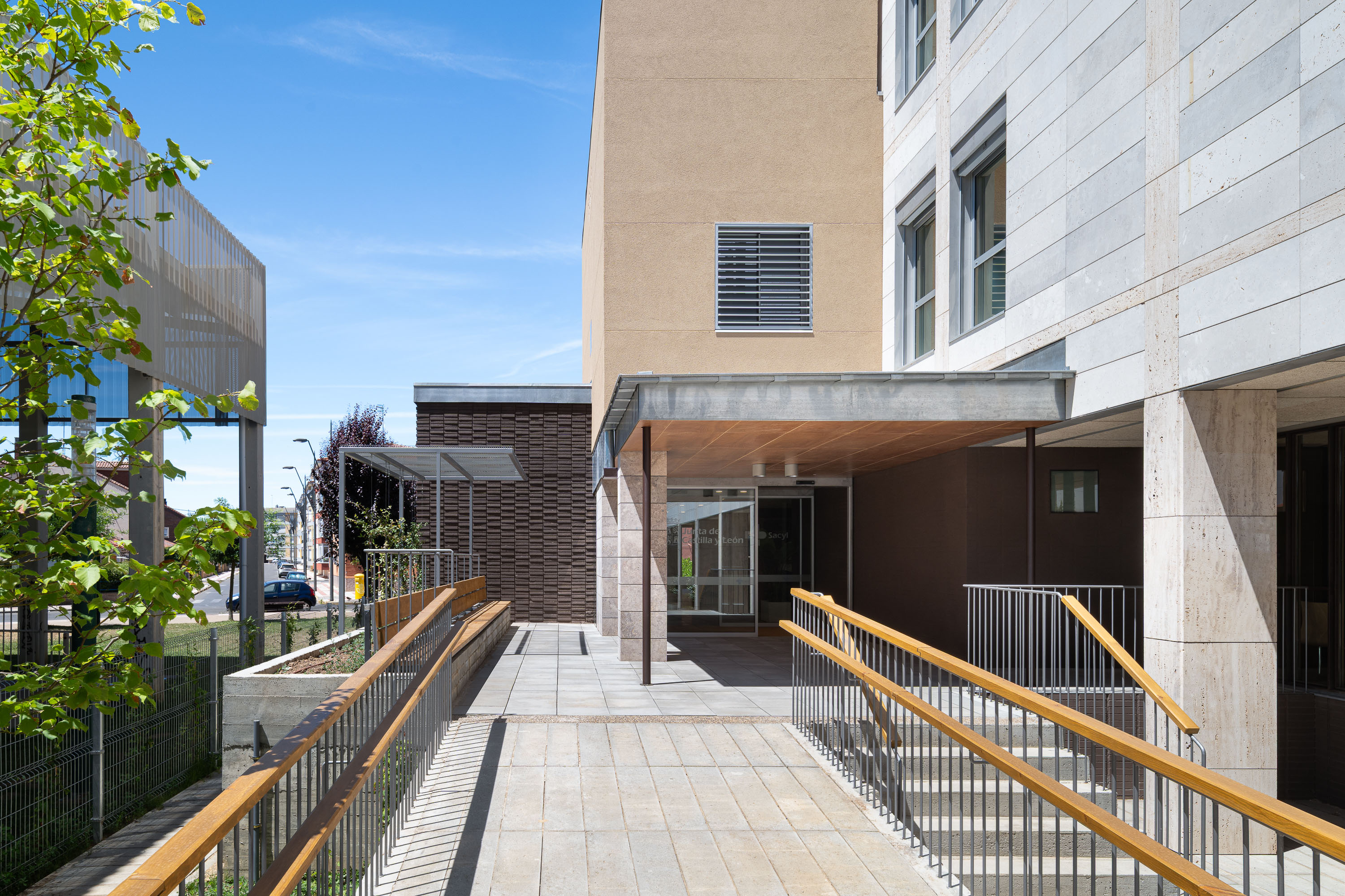 Amidst a neighborhood of modest, welcoming scale, the building now reclaims its place. In contrast to a nearby oversized residential structure that disrupts the urban balance, Centro de Salud Pinilla proposes an architecture that restores proportion and meaning. Its presence doesn’t aim to dominate but to repair the urban fabric, bringing cohesion and coherence back to the area. It is an architecture that heals through its very form.