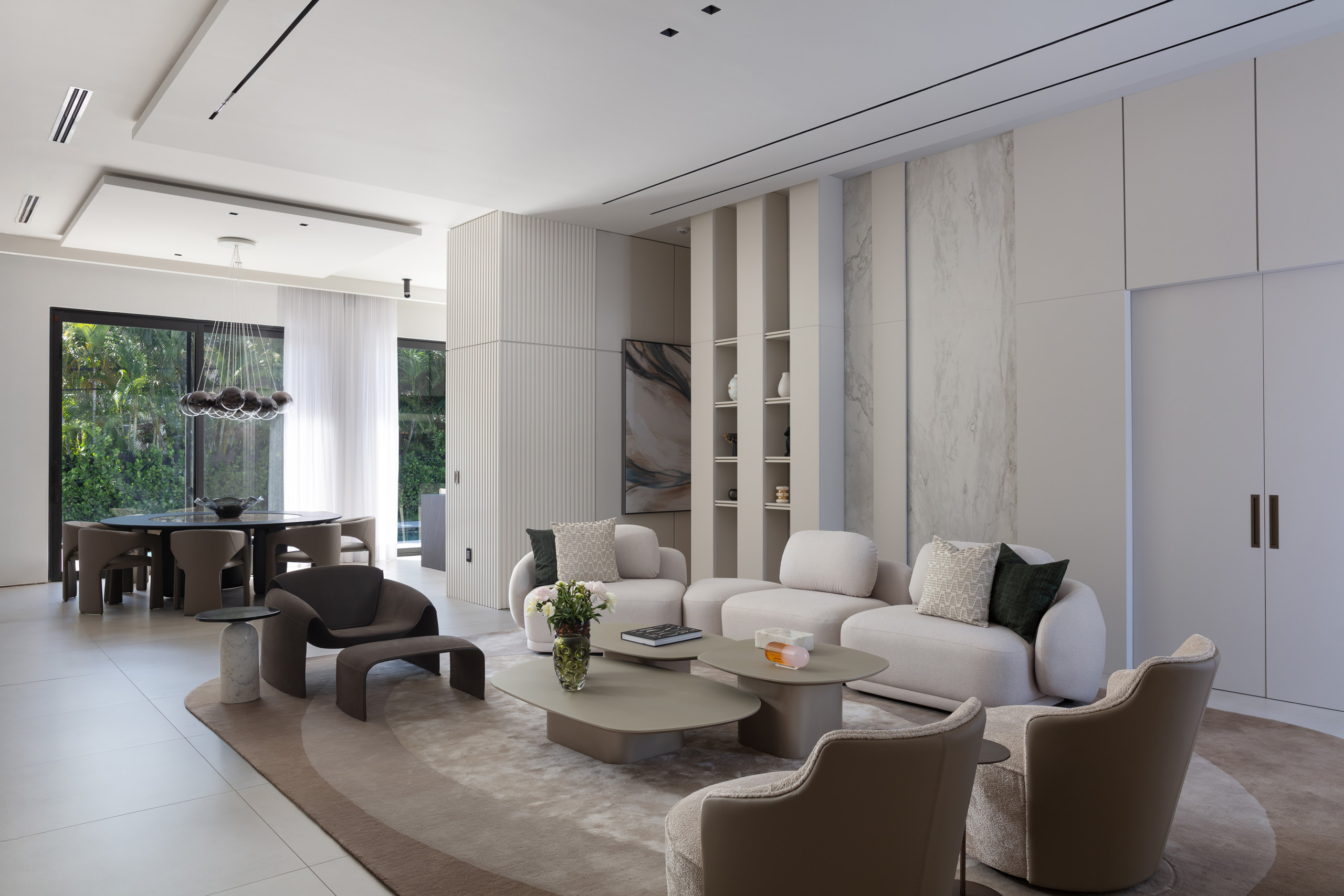 Evoking a coastal calm that resonates with its Miami surroundings, Seabreeze is a measured and harmonious family home defined by its sculptural silhouettes, luminous palette, and seamless integration between indoors and out.